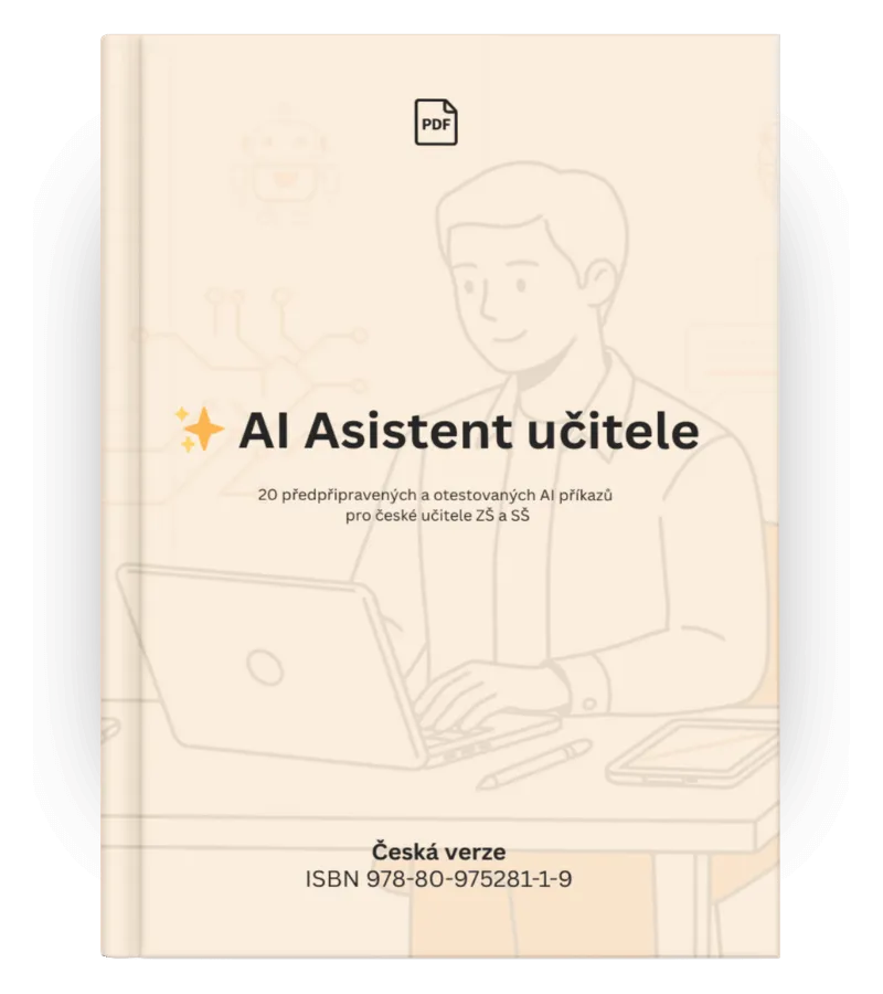 AI je dobrý sluha, ale špatný pán. E-book je navržen tak, aby vám pomáhal s rutinou – ne s tím, co je jádrem vaší práce: vztah se žáky, vysvětlování, podpora.